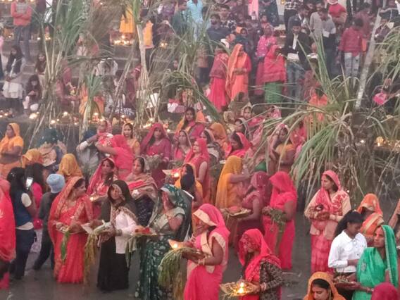 Chhath Puja 2023: गोरखपुर (Gorakhpur) में सूर्य देव की उपासना का महापर्व छठ पूजा (Chhath Puja 2023) बड़ी धूमधाम के साथ मनाया गया. उगते हुए सूर्य देव को अर्घ्य देकर 36 घंटे बाद व्रती महिलाओं ने पारण किया. इस दौरान यहां के राजघाट, राप्ती नदी के रामघाट, गोरखनाथ घाट, मानसरोवर, गोरखनाथ मंदिर के भीम सरोवर, तारामंडल मीरपुर राप्ती नदी जंगल बाकी सहित सभी घाटों, मोहल्लों और घरों पर व्रतियों-श्रद्धालुओं की ने उगते हुए सूर्य को अर्घ्य दिया.