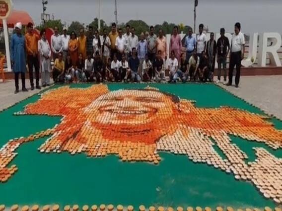 Gorakhpur News: यूपी के गोरखपुर में मुख्यमंत्री योगी आदित्यनाथ के 50वें जन्मदिन पर डीडीयू फाइन आर्ट स्टूडेंट्स ने उन्हें अनूठा उपहार दिया है. गोरखपुर विश्वविद्यालय के फाइन आर्ट के छात्र-छात्राओं ने मिलकर गोरखपुर के मिनी जुहू चौपाटी कहे जाने वाले रामगढ़ताल पर दीयों के माध्यम से ‘महाराज’ यानी मुख्यमंत्री योगी आदित्यनाथ की छवि (चित्र) को बनाकर मिसाल पेश की है. उनके 50वें जन्मदिन पर 50 वर्गमीटर में 7 हजार दीयों के माध्यम से इस ‘दीया कोलाज’ को तैयार किया है. इसे 21 कलाकारों ने 7 घंटे की मेहनत के बाद बनाया है. किसी भी संस्था द्वारा दीया के माध्यम से बनाया गया सीएम योगी आदित्यनाथ का ये पहला अनूठा दीया कोलाज है.
