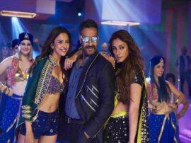 जहां तब्बू साड़ी और गाउन में दिखीं वहीं, रकुल प्रीत स्कर्ट और पिंक लहंगा चोली में नजर आई। इस गाने में अजय देवनग एक्ट्रेस तबू और रकुल प्रीत दोनों के साथ रोमांस करते नजर आ रहे हैं। रीक्रिएट किए गए इस गाने को गैरी संधू और नेहा कक्कड़ ने गाया है। इस फिल्म की कहानी ऐसे शख्स के आसपास घूमती है जो अपनी बहुत कम उम्र की लड़की को पसंद करता है।