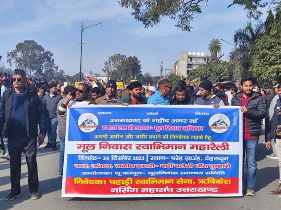 Uttarakhand News: उत्तराखंड में भू-कानून और मूल निवास 1950 लागू करने की मांग तेज हो गई है. रविवार को देहरादून के परेड ग्राउंड में विशाल महारैली का आयोजन किया गया. महारैली में राजनीतिक और सामाजिक से जुड़े हजारों लोग शामिल हुए. लोगों ने मूल निवास लागू करने और कट ऑफ डेट 26 जनवरी 1950 घोषित किए जाने के साथ भू कानून लागू किए जाने की जोरदार तरीके से मांग उठाई.