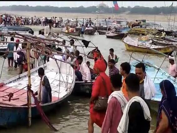 संगम का तट वीकेंड कोरोना कर्फ्यू के बावजूद आज पूरी तरह गुलजार दिखाई दिया. हालांकि, हज़ारों की भीड़ इकट्ठा होने से न तो लोगों ने सोशल डिस्टेंसिंग का पालन किया और न ही उनमें कोरोना का खौफ़ नज़र आया. संगम पर सुबह से ही सोशल डिस्टेंसिंग की धज्जियां उड़ती रहीं. लोगों को रोकने या समझाने के लिए सरकारी अमला पूरी तरह नदारद रहा. महामारी पर आस्था भारी तो नज़र आई, लेकिन कोरोना की बेफिक्री के साथ. तमाम लोग तो बिना मास्क के ही घाटों पर घूमते नज़र आए. ऐसा लग रहा है जैसे लोगों में कोरोना का कोई खौफ ही नहीं है.