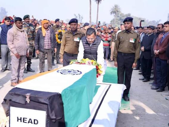 Sikkim Army Truck Accident: सिक्किम हादसे में शहीद एटा जनपद के अलीगंज तहसील के ताजपुर अद्दा के मूल निवासी लांस नायक भूपेंद्र सिंह के पार्थिव शरीर का अंतिम संस्कार पूरे राजकीय सम्मान के साथ उनके पैतृक गावं ताजपुर अद्दा में किया गया. इस अवसर पर उनको सेना के जवानों द्वारा सलामी दी गई. उन्हें श्रद्धांजलि देने के लिये हजारों लोगों का जन सैलाब उमड़ पड़ा. एटा के लाल भूपेंद्र सिंह राठौर को आज अंतिम विदाई देने के लिये एटा और आस-पास के हजारों लोगों का हुजूम उमड़ पड़ा. इस दौरान हर आंखें नाम थी. इस दौरान वहां उपस्थित हजारों लोगों ने जब तक सूरज चांद रहेगा, भूपेंद्र सिंह राठौर तेरा नाम रहेगा के नारे भी लगाए.