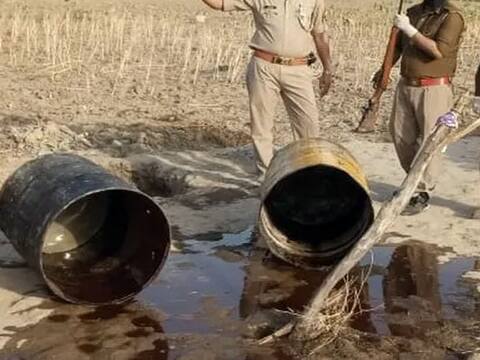 फतेहपुर: उत्तर प्रदेश के फतेहपुर जिले में मिलावटी शराब से दो लोगों की मौत के बाद अब पुलिस और आबकारी विभाग की टीम अवैध शराब कारोबारियों पर कहर बनकर टूटी है. जिले के तीन अलग-अलग थाना क्षेत्रों में पुलिस वऔर आबकारी विभाग की संयुक्त कार्रवाई में 40 लीटर मिलावटी शराब, 2 किलो यूरिया और कुल 343 लीटर कच्ची शराब बरामद की गई है. इसके अलवा पुलिस ने मौके से करीब 30 क्विंटल लहन और धधक रही 8 शराब की भट्ठियों को भी नष्ट किया है.
