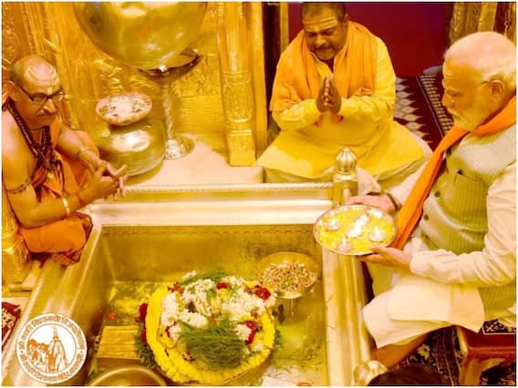 प्रधानमंत्री नरेंद्र मोदी (PM Narendra Modi) ने 27 फरवरी को वाराणसी (Varansi) के काशी विश्वनाथ मंदिर में पूजा अर्चना की थी. इस मंदिर परिसर का सौंदर्यीकरण किया गया है. अभी इसका एक चरण ही पूरा हुआ है. यह प्रधानमंत्री का ड्रीम प्रोजेक्ट है. प्रधानमंत्री जब पूजा करने काशी विश्वनाथ मंदिर (Kashi Vishwanath temple) के गर्भगृह में पहुंचे तो वह स्वर्णिम आभा में जगमगा रहा था.
