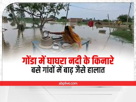 UP Latest News: गोंडा में घाघरा नदी भले ही खतरे के निशान से नीचे बह रही हो लेकिन घाघरा नदी के किनारे बसे गांवों घरों में दहशत और परेशानियां बरकरार है. 2 दिनों पहले घाघरा नदी का जलस्तर के चलते नदी किनारे बसे घरों गांव में पानी घुस गया था जिसको लेकर लोग परेशान हैं. तरबगंज तहसील क्षेत्र के ऐली परसोली तटबंध के पास नदी किनारे बसे घरों में बाढ़ जैसे हालात हैं और लगातार घाघरा नदी कटान कर रही जिससे अब तक कई कच्चे मकान पानी में बह गए हैं और हजारों एकड़ फसल हर साल बर्बाद हो जाती है.
