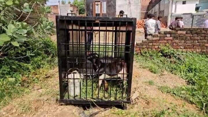गोरखपुर: 4 दिन बाद कॉलोनी में फिर टहलते CCTV में कैद हुआ तेंदुआ, ट्रैप करने को पिंजरे में बांधी बकरी