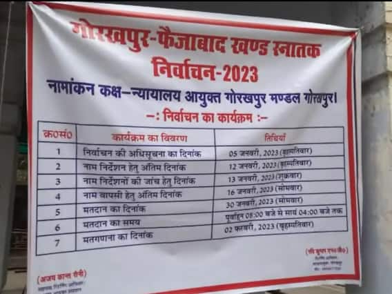 5 जनवरी से नामांकन की प्रक्रिया शुरूगोरखपुर के अपर आयुक्त और सहायक निर्वाचन अधिकारी अजय कांत सैनी ने बताया कि पहले दिन पर्चा लेने की प्रक्रिया शुरू हो चुकी है. उन्होंने बताया कि 12 जनवरी तक पर्चा यानी नामांकन दाखिल किया जा सकता है. इसके बाद 16 जनवरी तक नाम वापस लेने का समय रहेगा. 30 जनवरी को मतदान और 2 फरवरी को मतगणना होगी. गोरखपुर के एडीएम फाइनेंस राजेश सिंह ने बताया कि 5 जनवरी से गोरखपुर-फैजाबाद खण्ड स्नातक निर्वाचन क्षेत्र की नामांकन प्रक्रिया प्रारम्भ हो गई है. कोई भी 12 जनवरी तक नामांकन लेकर भरकर जमा कर सकता है. 12 जनवरी को दोपहर 3 बजे तक ये प्रक्रिया चलेगी. इसके बाद 13 को समीक्षा होगी. 16 जनवरी तक नाम वापसी की जा सकती है.
