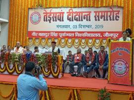 राज्यपाल मंगलवार को विवि के 23वें दीक्षांत समारोह में शामिल होने पहुंची थीं। विवि से सम्बद्ध कॉलेजों के 65 मेधावियों को कार्यक्रम अध्यक्ष राज्यपाल आनंदीबेन पटेल के हाथों से गोल्ड मेडल दिया गया। कई विषयों में शोध करने वाले 121 अभ्यर्थियों को भी उपाधि दी गई। राज्यपाल ने सभी को बेहतर भविष्य की शुभकामना दी।