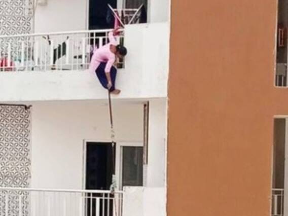 Greater Noida Hanky Viral Photo: सोशल मीडिया पर अक्सर हैरान करने वाली फोटो और वीडियो सामने आती रहती है. ऐसी ही एक फोटो उत्तर प्रदेश से सामने आई है. ग्रेटर नोएडा वेस्ट से एक फोटो वायरल हो रहा है, जिसमें एक फ्लैट में काम करने वाली नौकरानी 12वीं मंजिल की बालकनी से लटकी हुई दिखाई दे रही है. वह मालिक के गिरे एक रूमाल को उठाने के लिए 12वीं मंजिल से लटक गई. उसका यह फोटो सोशल मीडिया पर वायरल हो रहा है. जिस पर लोगों के अलग-अलग रिएक्शन भी देखने को मिले.