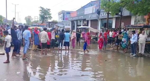 UP News: उत्तर प्रदेश के जनपद हापुड़ में रविवार (25 मई) की सुबह भीम नगर इलाके में रहने वाले लोग जलभराव की समस्या को लेकर अपने-अपने घरों से बाहर निकल आए और उन्होंने दिल्ली लखनऊ हाईवे एनएच 9 पर बांस बल्लियां लगाकर जाम लगा दिया. काफी संख्या में एकत्रित हुई महिलाओं का कहना था कि यहां बिन बारिश के भी जलभराव की स्थिति बनी हुई है और बारिश होने के बाद हाल बेहाल हो जाता है.