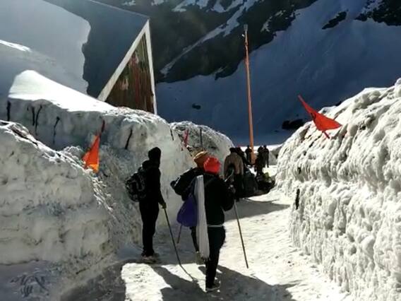 करीब 8 फीट मोटी बर्फ की सफेद चादर ओढ़े हेमकुंड साहिब धाम आजकल सचमुच धरती पर स्वर्ग का एहसास दिला रहा है. जून माह का पहला सप्ताह गुजरने के बाद भी पवित्र अमृत सरोवर सहित आसपास के क्षेत्र पूरी तरह बर्फ की आगोश में हैं. जानकारों का कहना है कि जून के महीने में हेमकुंड साहिब धाम का बर्फीला नजारा 13 वर्षों बाद देखने को मिला है. हेमकुंड साहिब गुरुद्वारा के वरिष्ठ प्रबंधक सरदार गुरुनाम सिंह ने बताया कि यात्रा सुगमता के साथ जारी है.