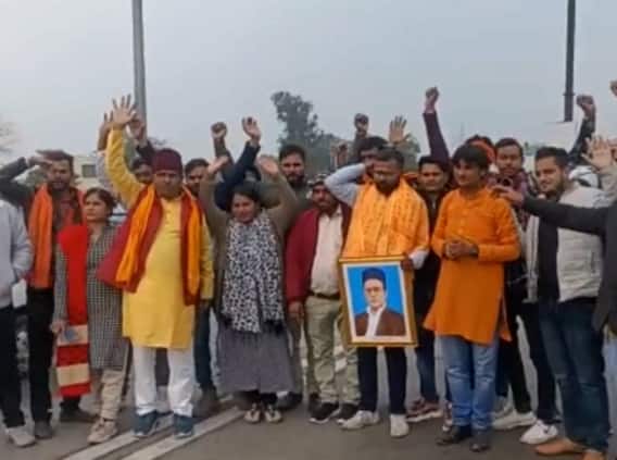 Aligarh Muslim University: अलीगढ़ मुस्लिम यूनिवर्सिटी (Aligarh University) में वीर सावरकर (Veer Savarkar) की तस्वीर स्थापित करने आ रहे अखिल भारत हिंदू महासभा के कार्यकर्ताओं को आज मडराक टोल प्लाजा पर पुलिस ने रोक लिया. पुलिस ने उन लोगों से ज्ञापन लेकर उनको वापस भेज दिया. ये लोग आगरा (Agra) से एएमयू (AMU) की तरफ जा रहे थे इनके पास वीर सावरकर की तस्वीर भी थी जिसको वो अपने साथ लाए थे और इसे AMU में लगाने जा रहे थे. इनकी मांग है कि 26 जनवरी के दिन जो एएमयू में नारे लगाए गए उस पर पुलिस ने कम धाराएं लगाकर केस दर्ज किया है. इस मामले में देशद्रोह और एनएसए की धारा भी लगाई जाए. अखिल भारत हिंदू महासभा के राष्ट्रीय प्रवक्ता संजय जाट ने कहा कि अलीगढ़ यूनिवर्सिटी में भारतीय संविधान के दिन गणतंत्र दिवस के दिन जिस तरह से देशद्रोही नारे लगाए गए. ये कहीं ना कहीं पूरे भारत के अंदर खतरे का संकेत है. आज हम लोगों ने एक ज्ञापन के माध्यम से कहा है कि थाना सिविल लाइन पुलिस ने जो मुकदमा लिखा है 153 बी में, वह इन धारा में उपयुक्त नहीं है. हमारी कप्तान साहब से बात चल रही है और अनुरोध भी किया है कि इन धाराओं में देशद्रोह और एनएसए के तहत कार्यवाही की जाए.