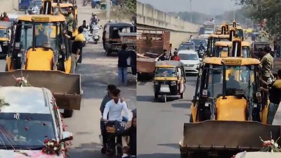 Jhansi Viral Video: उत्तर प्रदेश के झांसी में दुल्हन की विदाई के वक्त ऐसा नजारा देखने को मिला जिसे देखकर हर कोई हैरान रह गया. दुल्हन के घर के सामने एक के बाद एक बुलडोजरों की लाइन लग गई. जिसके बाद दूल्हा अपने दुल्हन को विदा करवाने के बाद आगे-आगे कार में बैठकर निकला तो उनके पीछे कई बुलडोजरों के साथ बाराती नाचते-गाते हुए आगे बढ़ रहे थे. ये वीडियो अब सोशल मीजिया पर जमकर वायरल हो रहा है. जिसे लेकर लोग कई तरह की चर्चाएं कर रहे हैं.