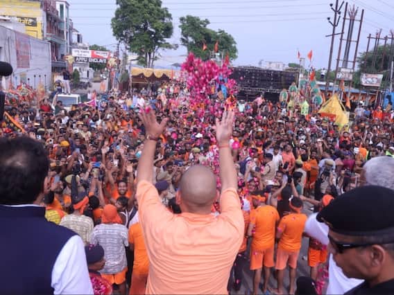 Kanwar Yatra 2023: दिल्ली-मेरठ हाईवे पर शुक्रवार का दिन कांवड़ियों के लिए बेहद खास रहा. मुख्यमंत्री योगी आदित्यनाथ (Yogi Adityanath) ने कांवड़ियों पर फूल बरसाए. मुख्यमंत्री के हाथों फूलों की बारिश होता देख शिवभक्तों की कांवड़ यात्रा यादगार बन गई. मुख्यमंत्री योगी आदित्यनाथ सहारनपुर से सीधे दिल्ली-मेरठ हाईवे पहुंचे. गाजे बाजे के साथ कांवड़ यात्रा निकली हुई थी. माहौल हर-हर महादेव के नारों से गुंजयमान था. मुख्यमंत्री योगी के लिए विशेष रूप से मंच सजाए गए थे. हजारों कांवड़ियों पर मुख्यमंत्री योगी ने दोनों हाथों से फूल बरसाए.