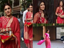 बॉलीवुड एक्ट्रेस शिल्पा शेट्टी भी करवाचौथ के त्योहार की पूजा के लिए अनिल कपूर के घर पहुंचीं। शिल्पा लाल रंग की साड़ी में माथे पर सिंदूर लगाए पूजा में पहुंचीं।