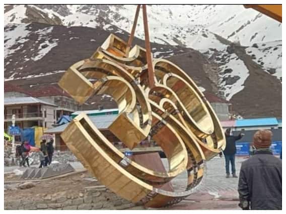 Kedarnath Dham Om News: केदारनाथ धाम की भव्यता को बढ़ाने के लिए केदारनाथ मंदिर परिसर से तीन सौ मीटर आगे पांच टन की भगवान शिव के अतिप्रिय ॐ चिन्ह की आकृति को स्थापित किया जा रहा है. इसका पहला ट्रायल हो गया है और दूसरा ट्रायल एक-दो दिन में होगा, जिसके बाद आठ से दस दिन में यह स्थापित किया जाएगा. केदारनाथ धाम की भव्यता बढ़ाने के लिए केदारनाथ मंदिर के ठीक आगे बनाए गए चबूतरे में भगवान शिव के अति प्रिय ॐ चिन्ह की आकृति को स्थापित किया जा रहा है.