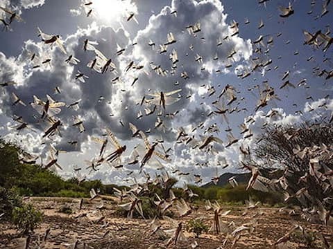 गोरखपुर. देश के कई राज्यों में टिड्डी दल फसलों को मुकसान पहुंचा रहे है. पश्चिमी उत्तर प्रदेश के किसानों के लिए सिरदर्द बना टिड्डियों का दल अंबेडकरनगर और संतकबीरनगर होते हुए गोरखपुर पहुंच गया है. टिड्डी दल की वजह से किसान परेशान हैं और दिन-रात खेतों में पहरा दे रहे हैं. टिड्डियों के दल को भगाने के लिए किसान थालियां पीटने के साथ-साथ आवाजें भी लगा रहे हैं. टिड्डियों के हमले ने गोरखपुर के उत्तर-पश्चिमी गांवों के किसानों की नींद उड़ा दी है.