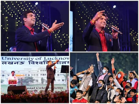 लखनऊ: 'गोमती का मचलता यह पानी भी है, हिंद के उस गदर की कहानी भी है. गंज हजरत चिकन चौक की आबरू, यह शान-ए-अवध तर्जुमा रूबरू...' कवि डॉ. कुमार विश्वास ने जब यह पंक्तियां सुनाईं तो लखनऊ विश्वविद्यालय का कला प्रांगण तालियों की गड़गड़ाहट से गूंज उठा. लखनऊ विश्वविद्यालय के शताब्दी वर्ष समारोह पांचवें दिन की शाम कवि डॉ. कुमार विश्वास के नाम रही.