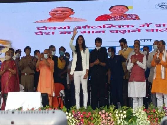 हुआ भव्य सम्मान समारोहटोक्यो ओलंपिक में हिस्सा लेने वाले हर खिलाड़ी का आज उत्तर प्रदेश की योगी सरकार ने सम्मान किया. भव्य सम्मान समारोह में मुख्यमंत्री योगी आदित्यनाथ, प्रदेश की राज्यपाल आनंदीबेन पटेल, उत्तर प्रदेश के दोनों डिप्टी सीएम और तमाम कैबिनेट मंत्री भी मौजूद रहे. इसके साथ ही साथ प्रदेश के 70 जिलों से भी खिलाड़ियों को बुलाया गया था. इस दौरान सभी खिलाड़ियों ने मुख्यमंत्री को भव्य सम्मान समारोह के लिए धन्यवाद दिया.