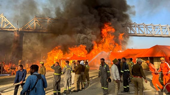 Mahakumbh Fire News: महाकुंभ क्षेत्र के सेक्टर 19 स्थित गीता प्रेस शिविर में रविवार को लगी आग पर काबू पा लिया गया है. इस घटना के बारे में गीता प्रेस के ट्रस्टी कृष्ण कुमार खेमका ने बताया कि घटना में जानी नुकसान नहीं हुआ है. गीता प्रेस के ट्रस्टी कृष्ण कुमार खेमका ने कहा, "यह आग हमारे यहां से नहीं लगी बल्कि बाउंड्री के पीछे कुछ लोग रह रहे हैं, वहीं से ही यह आग लगी है."