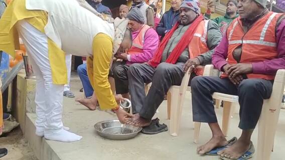 सफाई कर्मियों का चरण धोकर सांसद ने दिया सनातन एकता का संदेश