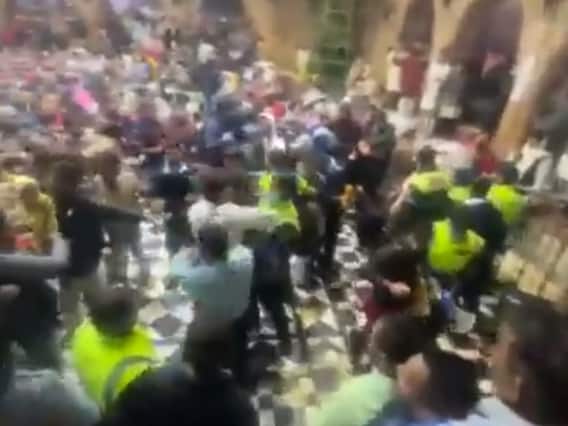वीडियो में साफ दिखावायरल वीडियो शुक्रवार का है जिसमें गार्ड लोगों को पीटते हुए देखे जा सकते हैं. मामले में एफआईआर दर्ज करने की भी मांग की जा रही है. घटना के दौरान मंदिर परिसर में अफरा तफरी का माहौल हो गया था. वहां दर्शन के लिए आए लोगों के बीच हड़कंप मच गया. मंदिर प्रशासन ने भी इसे लेकर नाराजगी जताई है. बता दें कि क्रिसमस का त्योहार, वीकेंड और नए साल पर यहां काफी ज्यादा लोगों के आने की संभावना थी. इसे लेकर भीड़ को नियंत्रित करने के लिए तैयारियां भी की गईं थीं.