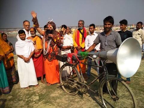 प्रयागराज : उत्तराखंड में ग्लेशियर टूटने से मची तबाही के बाद संगम नगरी प्रयागराज में ख़ास निगहबानी की जा रही है. इसकी वजह यहां लगा माघ मेला है, जिसके लिए गंगा नदी के दोनों तटों पर अलग से तम्बुओं का शहर आबाद किया गया है. हालांकि मेले से खतरे की आशंका टल गई है, लेकिन इसके बावजूद यहां सरकारी अमले से लेकर साधू -संत तक ख़ास निगहबानी कर लोगों को जागरूक करने में लगे हुए हैं. मेले में अमेठी से आए परमहंस आश्रम के महंत शिवयोगी मौनी महाराज अब साइकिल पर स्पीकर बांधकर माइक पर एनाउंसमेंट करते हुए कल्पवासियों और श्रद्धालुओं को आगाह कर रहे हैं.