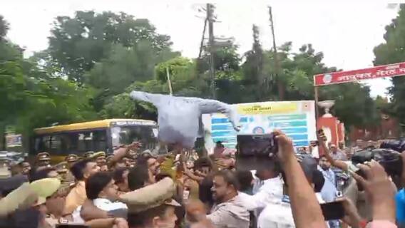 पुतला छीनकर भागी पुलिस, भाजपाईयों ने लगा दी दौड़अखिलेश यादव का पुतला पुलिस ने नहीं फूंकने दिया. पुलिस पुतला लेकर जैसे ही भागी तो भाजपाई बेहद गुस्से में आ गए और पुलिसकर्मियों के पीछे ही दौड़ लगा दी. पुलिस आगे-आगे और भाजपाई पीछे-पीछे दौड़ रहे थे. आखिरकार पुलिस अखिलेश यादव का पुतला लेकर चली गई. बीजेपी के नेताओं ने जमकर हंगामा किया और नारेबाजी शुरू कर दी. पुलिस के इस रवैये से भाजपा के नेता भी बेहत गुस्से में और आक्रामक नजर आए. पुलिसकर्मियों से पुतला मांगा भी गया, लेकिन पुलिस वालों ने अखिलेश यादव का पुतला नहीं दिया.