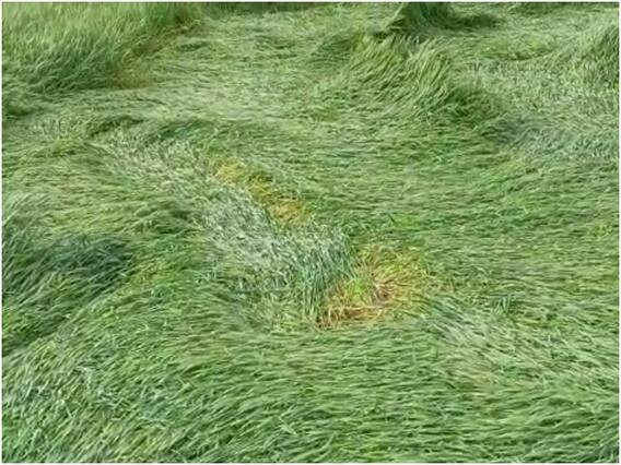 Meerut Rain: मेरठ (Meerut) समेत पश्चिमी उत्तर प्रदेश में बारिश (Rain) किसानों के लिए आफत लेकर आई है. कई इलाकों में गेहूं की फसल (Wheat Crop) बर्बाद हो गई है. बारिश के साथ यहां तेज हवाएं भी चल रही हैं जिससे गेहूं की खड़ी फसल गिर गई. खेत में पानी भर गया और किसानों को डर है कि उससे गेहूं की फसल सड़ जाएगी.