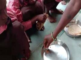 बच्चों को नमक रोटी बांटने की घटना मिर्जापुर जिले के जमालपुर ब्लॉक के सियूर प्राथमिक विद्यालय में हुई। वीडियो में नजर आ रहा है कि बच्चे जमीन पर बैठे हैं और थाली में उन्हें मिड-डे मील के रूप में नमक और रोटी दी जा रही है। मामला सामने आने के बाद स्थानीय लोगों ने बताया कि इस स्कूल में अक्सर बच्चों को खाने के नाम पर नमक रोटी या नमक और भात (चावल) दिया जाता है।