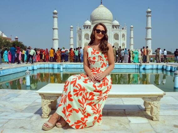Miss Universe Jessica Page visits Taj Mahal: मिस यूनिवर्स ग्रेट ब्रिटेन जेसिका पेज (Jessica Page) ने गुरुवार को ताजमहल का दीदार किया. ताजमहल स्मारक के सह प्रभारी प्रिंस बाजपेयी ने बताया कि ग्रेट ब्रिटेन की मिस यूनिवर्स दिन में 10 बजे के आसपास ताजमहल का दीदार करने पहुंचीं. उन्होंने कहा कि इस दौरान पेज के साथ उनके परिजन और अन्य लोग थे. बाजपेयी ने बताया कि वह ताजमहल का दीदार करके काफी उत्साहित नजर आयीं. इन पलों को यादगार बनाने के लिए उन्होंने जमकर फोटो भी खिंचवाये. उन्होंने बताया कि इस दौरान पेज ने गाइड से ताजमहल के इतिहास और शिल्पकला की जानकारी ली.