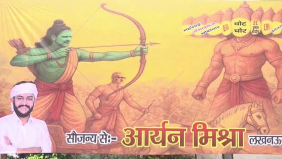 उत्तर प्रदेश की राजधानी लखनऊ में दशहरे के मौके पर कांग्रेस दफ्तर के बाहर एक बेहद अनोखा और चर्चित पोस्टर लगाया गया, जिसने राजनीतिक हलचल तेज कर दी. कांग्रेस कार्यकर्ता आर्यन मिश्रा द्वारा लगाए गए इस पोस्टर में पार्टी के नेता राहुल गांधी को भगवान राम के रूप में दर्शाया गया है.