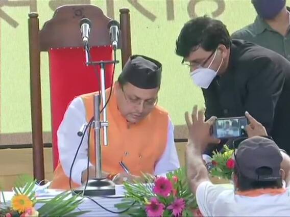 देरहादून: खटीमा से बीजेपी के विधायक पुष्कर सिंह धामी ने उत्तराखंड के मुख्यमंत्री पद की शपथ ली. वे उत्तराखंड के 11वें मुख्यमंत्री बनें. देहरादून स्थित राजभवन पर राज्यपाल बेबी रानी मौर्य ने उन्हें पद और गोपनीयता की शपथ दिलाई. धामी के अलावा बीजेपी के सीनियर नेता सतपाल महाराज, हरक सिंह रावत, बंशीधर भगत, यशपाल आर्य, बिशन सिंह चुफाल, सुबोध उनियाल, अरविंद पांडेय, गणेश जोशी, धन सिंह रावत, रेखा आर्य और यतीश्वरानंद ने मंत्री पद की शपथ ली.