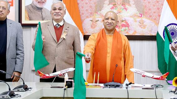स्पाइस जेट की हवाई सेवा का सीएम योगी ने किया शुभारंभ