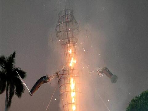 अयोध्या. अयोध्या में ग्रीन पटाखे से विशेष रूप से तैयार रावण का दहन कर दिया गया. 55 फीट ऊंचे इस रावण को कम प्रदूषण को ध्यान में रखते हुए खासतौर पर दिल्ली में तैयार करके मंगवाया गया था. अयोध्या की रामलीला कैंपस में इस रावण की प्रतिमा को लगाया गया और रामलीला में जैसे ही रावण का वध हुआ उसी के बाद इस रावण का दहन कर दिया गया. रामलीला में अहिरावण की भूमिका निभाने वाले रजा मुराद ने कहा कि रामलीला केवल मनोरंजन का साधन नहीं है बल्कि यह सीख देती है. रावण राजा था, बलशाली था और बहुत बड़ा ज्ञानी भी था, लेकिन उससे गलती यह हुई कि उसने एक विवाहित स्त्री पर हाथ डाला और यही उसके पतन का कारण बना, इसलिए यहां बहुत बड़ी सीख है और बुराई पर हमेशा अच्छाई की जीत होती है.