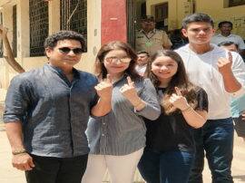 उनमें से एक महान क्रिकेटर सचिन तेंदुलकर भी थे, जो अपने परिवार के साथ मुंबई के बांद्रा में वोट देने पहुंचे। सचिन के साथ उनकी पत्नी अंजलि और उनके बच्चे सारा और अर्जुन तेंदुलकर पोलिंग बूथ पर प्रवेश करते वक्त स्पॉट हुए। अपने वोट डालने के बाद, सचिन और उनके परिवार ने मीडिया को पोज़ दिया क्योंकि उन्होंने अपनी उगलियों को दिखा दिया था। मतदान केंद्र पर पहुंचते ही वो भारी पुलिस की मौजूदगी में घिर गए।