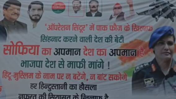 लखनऊ में सपा मुख्यालय में कर्नल सोफिया कुरैशी के अपमान पर पोस्टर लगाया है. इस पोस्टर में लिखा है, 'ऑपरेशन सिंदूर में पाकिस्तानी सेना के खिलाफ सिंहनाद करने वाली देश की बेटी सोफिया का अपमान देश का अपमान है. बीजेपी देश से माफी मांगे. हिंदू-मुस्लिम के नाम पर हम न बटेंगे, न बांट सकोगे. हर हिंदुस्तानी का हौसला नफरत की सियासत के खिलाफ है."