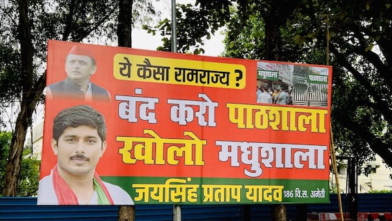 स्कूलों के मर्जर के विरोध में लगाया पोस्टरये पोस्टर अमेठी जिले के सपा नेता जयसिंह ने लगवाएं हैं, जिस पर लिखा है कि- 'ये कैसा रामराज्य? बंद करो पाठशाला, खोलो मधुशाला!' सपा दफ्तर के बाहर लगे इस पोस्टर को लेकर कई तरह की चर्चाएं शुरू हो गई हैं. समाजवादी पार्टी इस फैसले को लेकर प्रदेश सरकार को घेरने की कोशिश कर रही है, कई जिलों में पार्टी कार्यकर्ताओं द्वारा विरोध प्रदर्शन भी किए जा रहे हैं.