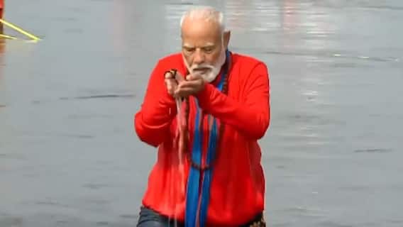 प्रधानमंत्री नरेंद्र मोदी बुधवार को सुबह प्रयागराज में आयोजित महाकुंभ 2025 में पहुंचे और त्रिवेणी संगम में डुबकी लगाई. भगवा रंग का वस्त्र पहने मोदी ने स्नान करने के बाद गंगा को प्रणाम करते हुए सूर्यदेव को अर्घ्य दिया. अधिकारियों ने बताया कि प्रधानमंत्री बुधवार की सुबह अरैल घाट के पास बने हेलीपैड पर हेलीकॉप्टर से पहुंचे और वहां से मुख्यमंत्री योगी आदित्यनाथ उन्हें बोट से लेकर संगम पहुंचे जहां प्रधानमंत्री ने डुबकी लगाई.