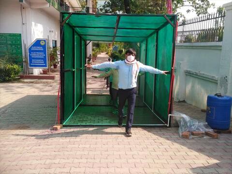 प्रयागराज, मोहम्मद मोइन। देश और दुनिया इन दिनों कोरोना की महामारी से जूझ रही है। जानकार यह साफ़ कर चुके हैं कि जब तक इसकी कोई वैक्सीन नहीं आ जाती, तब तक हमें कोरोना के साथ ही जीना होगा। एहतियात बरतकर खुद को कोरोना से बचाना होगा। लॉकडाउन की वजह से स्कूल -कालेज फिलहाल तो बंद हैं, लेकिन आने वाले दिनों में यहां पढ़ाई भी शुरू होगी और स्टूडेंट्स व टीचर्स को भीड़ में कोरोना से बचाना भी होगा। इसके लिए तमाम शैक्षिक संस्थाओं ने अभी से एहतियाती कदम उठाने की कवायद भी शुरू कर दी है। इसी कड़ी में संगम नगरी प्रयागराज के शंभुनाथ इंस्टीट्यूट ऑफ इंजीनियरिंग एंड टेक्नालाजी ने एक ऐसी टनल यानी सुरंग का निर्माण किया है, जिसमे दाखिल होते ही सभी तरह के संक्रमण तकरीबन ख़त्म हो जाएंगे और कोरोना का खतरा कुछ देर के लिए काफी कम हो जाएगा। यह टनल दाखिल होने वालों को पूरी तरह सेनेटाइज़ कर देती है।