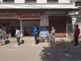 कानपुर में लॉक डाउन के दूसरे दिन भी लोग पूरी तरह से पालन करते नहीं दिख रहे हैं। लोग बेवजह बाहर निकल रहे हैं और साथ ही साथ दुकानों में भीड़ के रूप में इकट्ठा हो रहे हैं। सामान खरीदते समय लोग दूरी का बिल्कुल भी ध्यान नहीं रख रहे हैं। ऐसे में कानपुर के एक दुकानदार ने एक अच्छी पहल करते हुये लोगों को जागरूक किया। संक्रमण को रोकने के लिए दुकान के बाहर भीड़ न हो, इसके लिए एक एक मीटर की दूरी पर सर्कल बना दिये हैं, जिससे कि खरीददारी करने वाले उचित दूरी बनाए रखे। यही नहीं लोग इसका पालन भी करते नजर आ रहे हैं।
