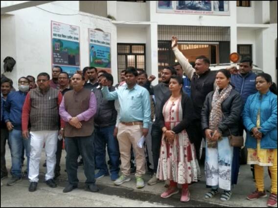 Sonbhadra News: उत्तर प्रदेश के मुख्यमंत्री योगी आदित्यनाथ के कार्यक्रम में सोनभद्र गए ग्राम प्रधान, पंचायत अधिकारियों के बसों में डीजल भरवाने को लेकर के बड़े बाबू के द्वारा ग्राम पंचायत सचिव को मोबाइल पर गाली गलौज और जान से मारने की धमकी का मामला तूल पकड़ता जा रहा है. कल पीड़ित ग्राम पंचायत सचिव के द्वारा घटना के तुरंत बाद लखनऊ के ही पीजीआई कोतवाली में पंचायती राज अधिकारी के बड़े बाबू के खिलाफ तहरीर देकर मुकदमा दर्ज करने की मांग की गई थी. आज सीडीओ ऑफिस में जिले भर के ग्राम पंचायत सचिवों और अधिकारियों ने प्रदर्शन कर तत्काल बाबू पर मुकदमा दर्ज कर बर्खास्तगी की मांग की है.
