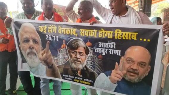 वहीं दूसरी तरफ मध्य में मुंबई हमले के मास्टरमाइंड तहव्वुर राणा की भी तस्वीर को दर्शाया गया था. यह पोस्टर पूरे जनसभा स्थल पर चर्चा के केंद्र में रहा. पोस्टर लेकर पहुंचे बीजेपी कार्यकर्ताओं का दावा है कि प्रधानमंत्री नरेंद्र मोदी की भी नजर इस पोस्टर पर पड़ी थी.