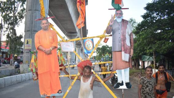 मेरठ के तरुण कुमार पीएम मोदी और सीएम योगी की कांवड़ ला रहे हैं. एक तरफ पीएम मोदी और दूरी तरफ सीएम योगी का बड़ा कटाउट लगा रखा है. वो कांवड़ लेकर जिस भी रास्ते से गुजर रहे हैं वहीं लोग उनकी कांवड़ की भी चर्चा कर रहे हैं. लोग कांवड़ को देखकर रुक जाते हैं. तरुण जब लोगों को बताते हैं कि मोदी और योगी ने अच्छे काम किए हैं और इससे खुश होकर ही को मोदी योगी की कांवड़ ला रहें हैं तो लोग तालियां बजाकर उनका स्वागत कर रहे हैं.