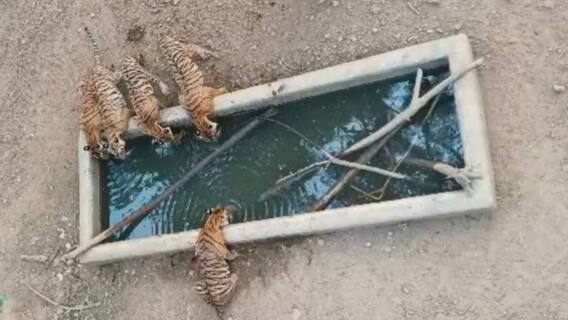 पानी पीते हुए कैमरे मे कैद हुआ बाघों का समूह तराई केंद्रीय वन विभाग के डीएफओ उमेश सिंह तिवारी ने बताया कि हर साल भीषण गर्मी के प्रकोप से वन्यजीवों को बचाने के लिए वन विभाग द्वारा जगह-जगह पर अस्थाई कुंड और तालाब के निर्माण किए जाते हैं. जिसमें टैंकर की मदद से हर रोज पानी भरा जाता है, इन तालाबों और कुंडों पर हाथी, हिरण, बाघ, तेंदूए सहित तमाम पशु पक्षी पानी की तलाश में यहां तक पहुंचकर पानी पीने आते रहते हैं.