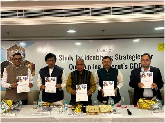 केंद्रीय वित्त राज्य मंत्री पंकज चौधरी मेरठ की जीडीपी चार गुना करने के लक्ष्य पर आधारित स्टडी बुक का विमोचन करने आए थे. इस दौरान कार्यक्रम में सांसद राजेंद्र अग्रवाल ने मेरठ की प्रगति रिपोर्ट उनके सामने रखी. इस दौरान उन्होंने कहा कि हैंडलूम, स्पोर्ट्स, कैंची, रेवड़ी गजक, ज्वैलरी, किसानी में मेरठ का कोई सानी नहीं है. मेरठ सिटीजन फोरम और फेडरेशन ऑफ इंडियन स्मॉल मीडियम एंड माइक्रो एंटरप्राइजेज (FISME) के प्रतिनिधियों ने भी वित्त राज्य मंत्री पंकज चौधरी के सामने स्टडी रिपोर्ट रखी.