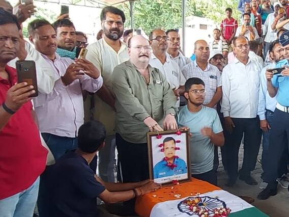 Indian Air Force Personnel Death: उत्तर प्रदेश (UP) में उन्नाव (Unnao) के सिविल लाइन के कब्बा खेड़ा निवासी एयरफोर्स कर्मी का शनिवार दोपहर ड्यूटी के दौरान गिरकर निधन हो गया था. सोमवार को दिवंगत का पार्थिव शरीर नगर के मिश्रा कॉलोनी शमशान घाट लाया गया, जहां गॉड ऑफ ऑनर के बीच परिजनों ने अंतिम संस्कार किया. इस दौरान लोगों ने दिवंगत आत्मा को श्रद्धांजलि दी. कब्बा खेड़ा निवासी दीपक तिवारी के 33 साल के बेटे आदर्श (Adarsh) उर्फ गोलू की राजस्थान (Rajasthan) के बाड़मेर (Barmer) के चौहटन बॉर्डर पर ऑन ड्यूटी गिरने से मौत हो गई थी. सूचना के बाद परिवार को लोग राजस्थान पहुंचे थे.