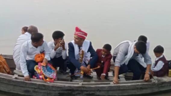 सड़क मार्ग न होने पर दूल्हा राघवराम दुल्हनिया लेने के लिए डीजे, बाजा और बराती लेकर नाव से निकल पड़ा. वह नाव से बारात लेकर शादी करने के लिए लड़की के गांव पहुंच गया. नाव सवार दूल्हे को देखने के लिए गांव के लोगों की भीड़ जुट गई. क्षेत्र में नाव सवार बारातियों की खूब चर्चा हो रही है. इसका वीडियो भी सोशल मीडिया पर तेजी से वायरल हो रहा है.