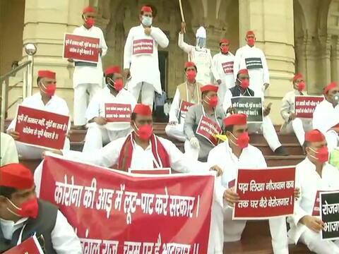 सपा ने किया प्रदर्शन उधर, समाजवादी पार्टी के नेताओं ने विधानसभा के बाहर जोरदार प्रदर्शन किया. सपा नेताओं ने योगी सरकार के खिलाफ नारेबाजी भी की.