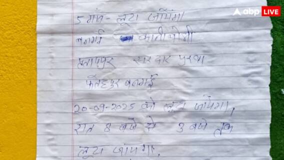बता दें यूपी के श्रावस्ती में 5 गांव को लूटने के लिए पर्चा चस्पा किया गया है. नोटिस में अज्ञात के द्वारा खुला चैलेंज देते हुए लिखा गया कि 'डालूंगा डाका बचा सकते हो तो बचा लो'. बता दें इन दिनों गांव-गांव मे चोरों का आतंक बढ़ता जा रहा है वहीं ड्रोन की अफवाहें भी तेजी से सामने आ रही हैं.